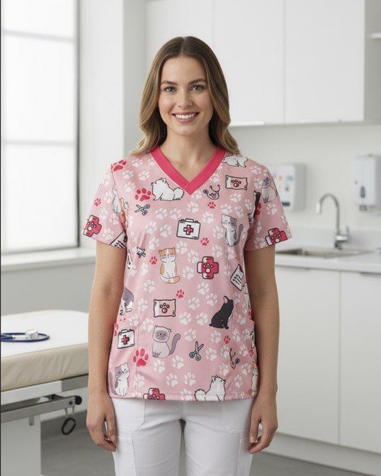 All-over Print Women's Medical Scrub Top