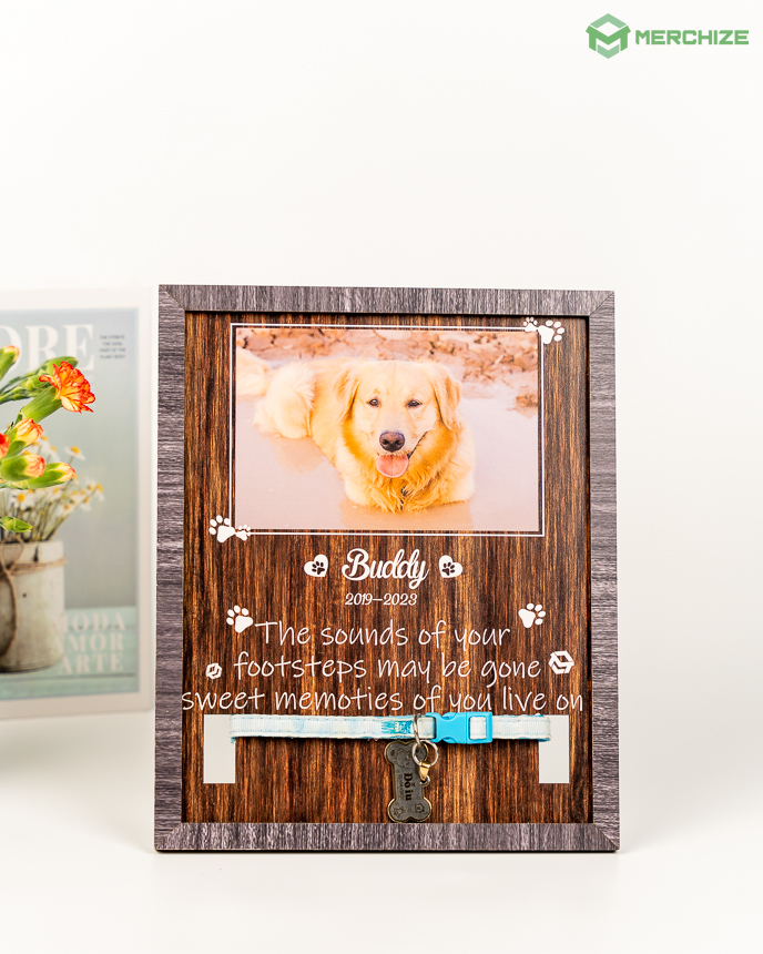 Keep your favorite pet's memory alive with Merchize's Memorial Pet Collar Sign. Make this sturdy 0.5-cm plywood sign your own with a name, photo, and message. It's ready to hang or stand with a sawtooth hook and easel back. It's the perfect heartfelt gift or keepsake, and it gives sellers a unique product that could ramp up sales and open up new opportunities in the booming print-on-demand market.